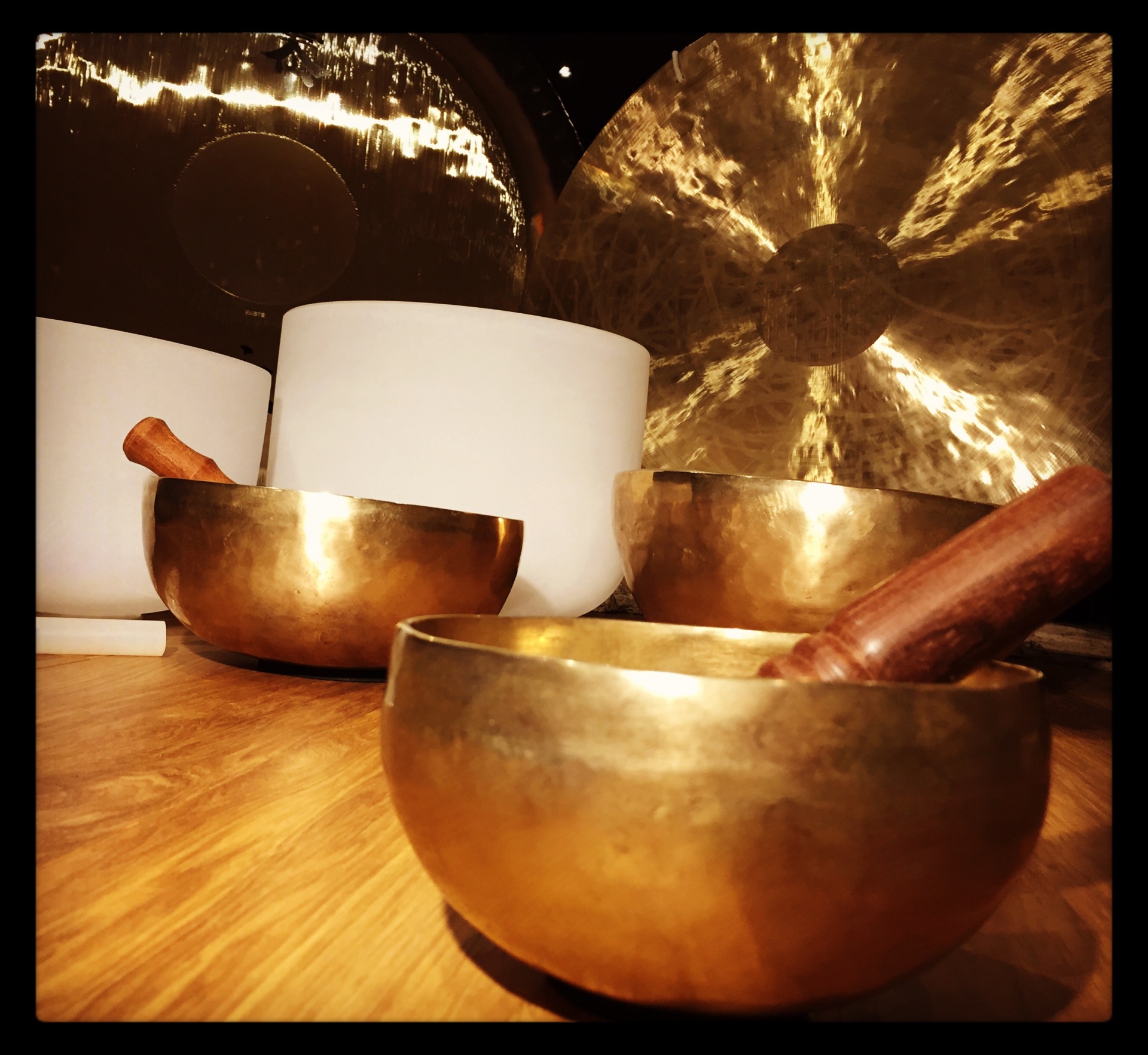 Himalayan singing bowls, Crystal singing bowls, Gongs and percussion are used by Graham to induce guests in to a deeply relaxed state.